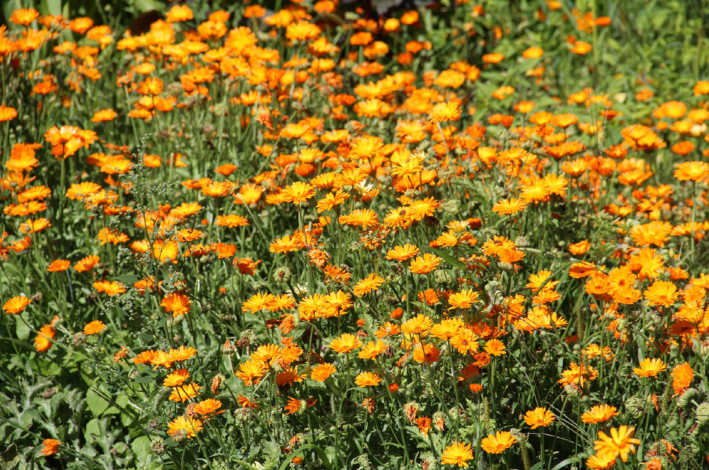 Ringelblume – ein Klassiker im Naturgarten, heilkräftig, blühfreudig und essbar; ihre Blütenblätter passen in Salate, Butter oder Dips.